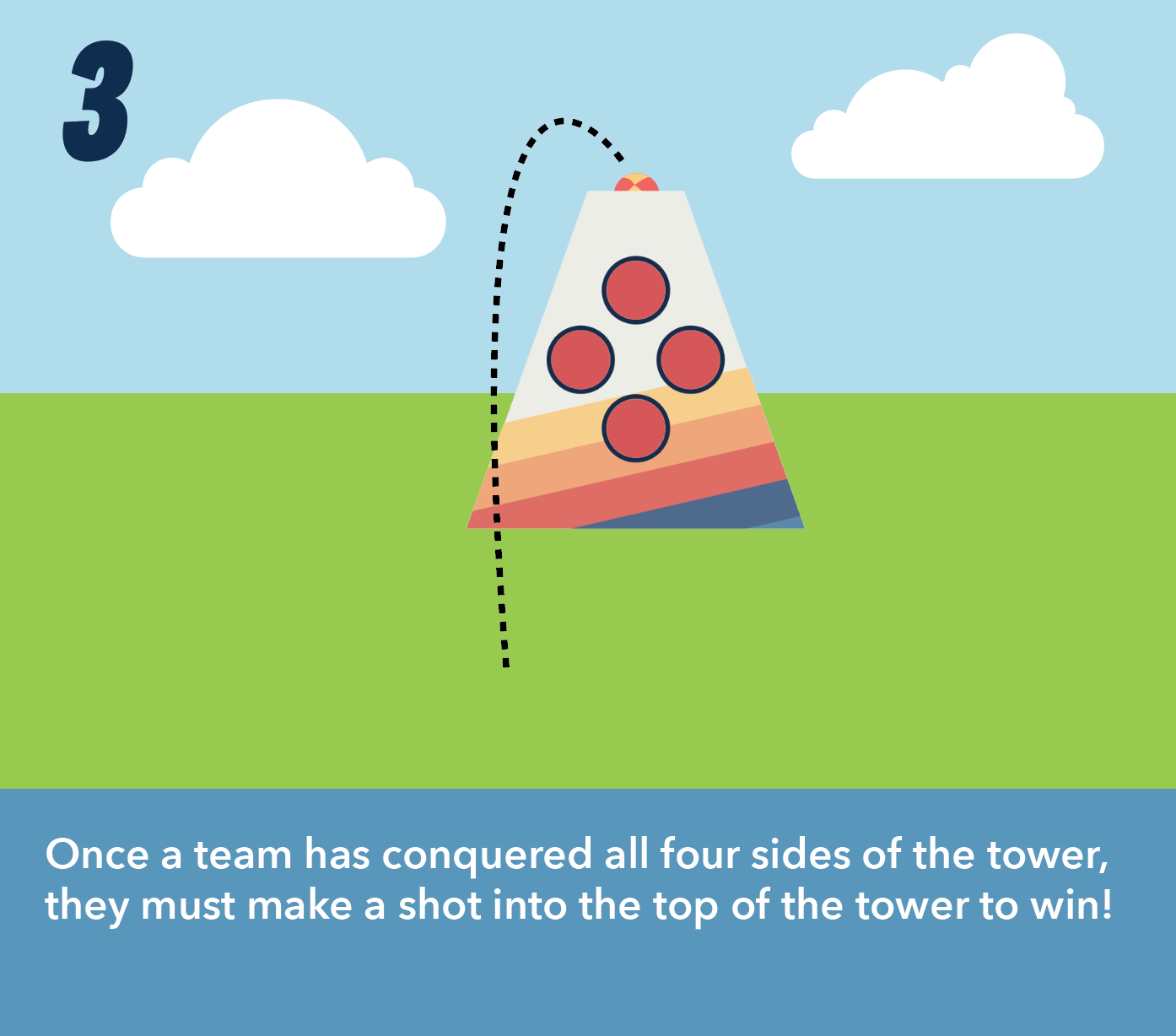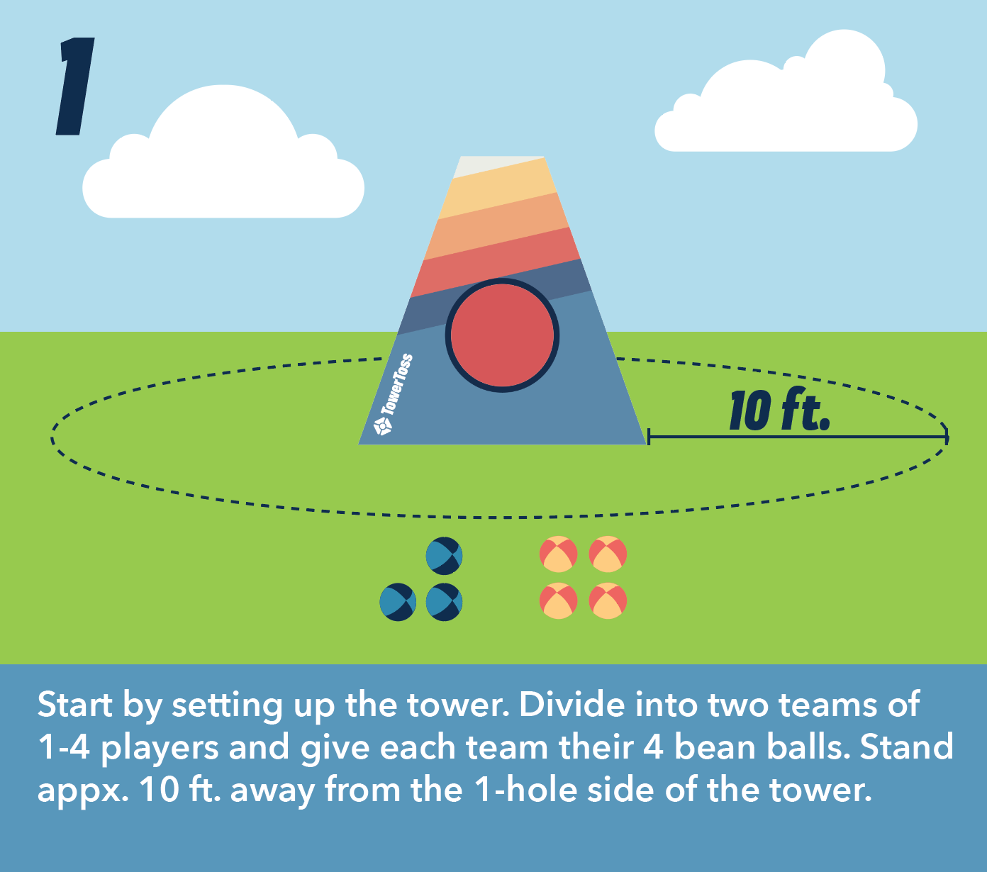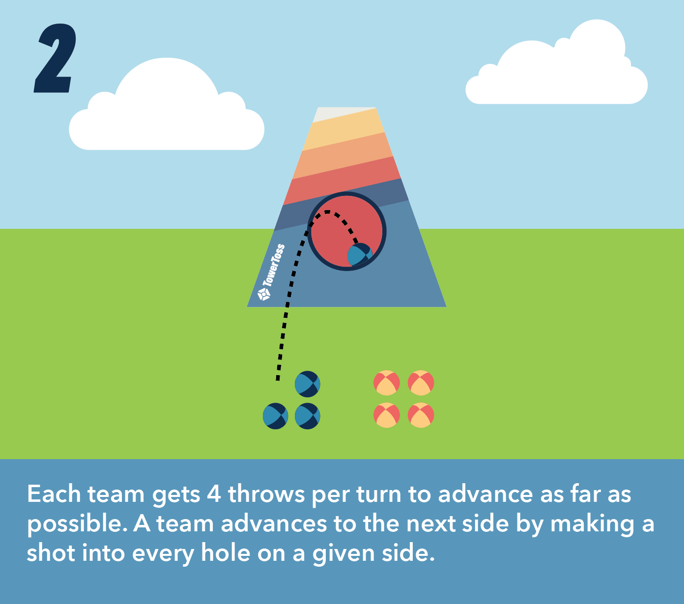 TowerToss takes the classic backyard tossing game and cranks up the excitement with a tower target that players can attack from all sides. Be the first to conquer every side with a final shot through the top to win!